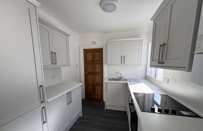The modern fitted kitchen leads directly to a dining area, creating a practical and sociable layout ideal for everyday living and entertaining.